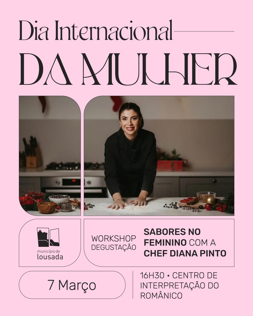 O Município de Lousada vai assinalar o Dia Internacional da Mulher com a realização do workshop e degustação “Sabores no Feminino”, agendado para sábado, 7 de março, entre as 16h30 e as 18h30, no Centro de Interpretação do Românico. A atividade será dinamizada pela chef Diana Pinto e integra a programação municipal associada à comemoração desta data, que é assinalada internacionalmente a 8 de março.
