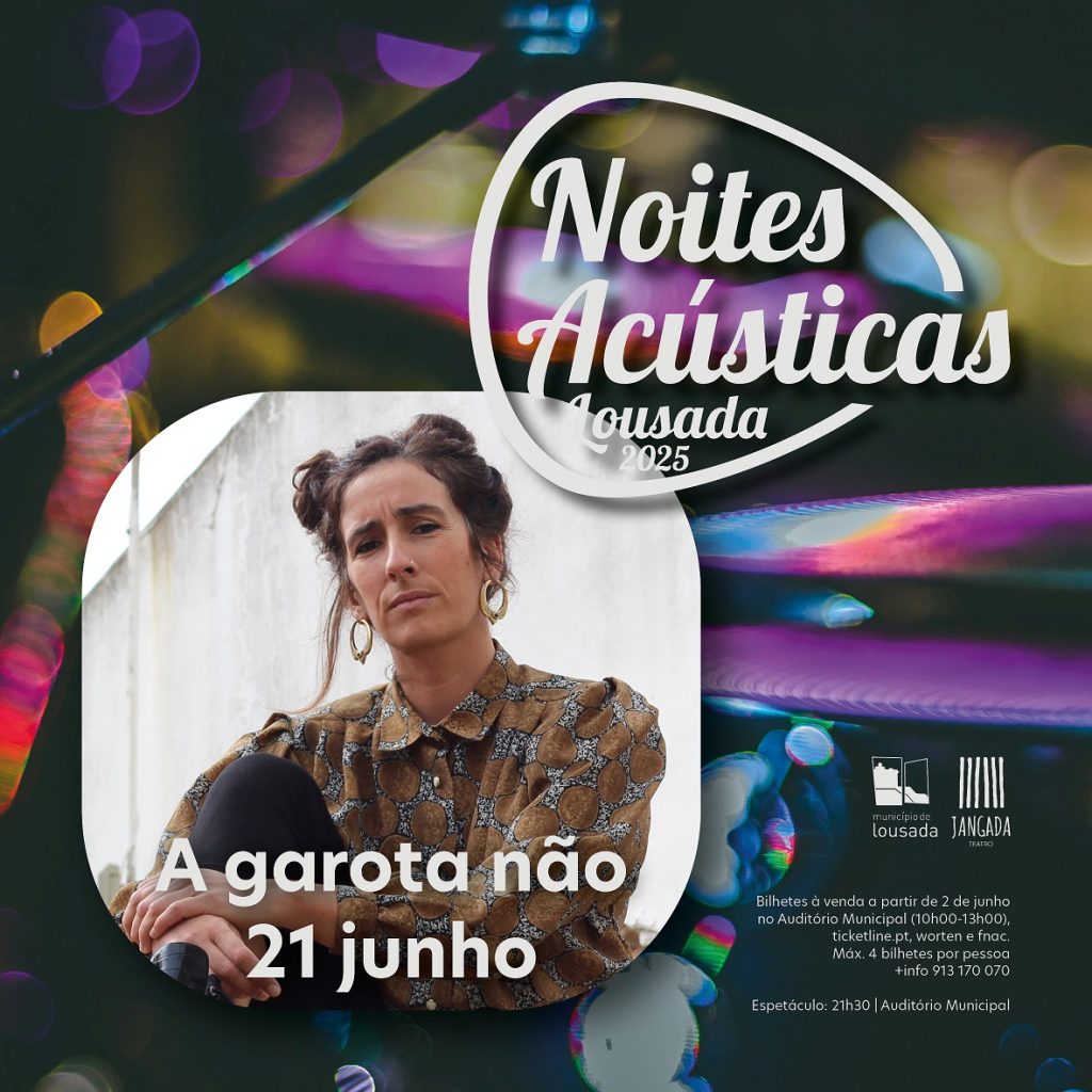 Ainda no dia 21, o Auditório Municipal acolhe o concerto de encerramento das Noites Acústicas com A Garota Não, uma das vozes mais marcantes da nova música portuguesa. Os bilhetes estão disponíveis nos locais, nomeadamente no Auditório Municipal, na Ticketline, na Worten, na Fnac e online.